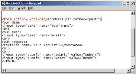 Example: <form action="/cgi-bin/FormMail.cgi">