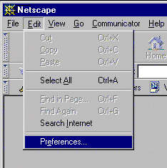 1. Open Netscape Browser 2. Move to the "Edit" drop down menu and select "Preferences."